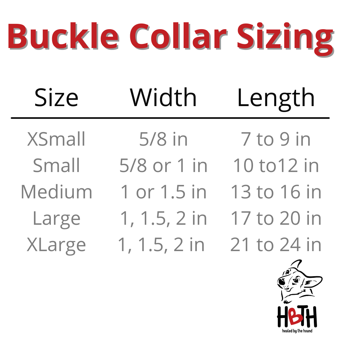 Buckle Collars come with black plastic hardware, but upgrades are available as an add on purchase.