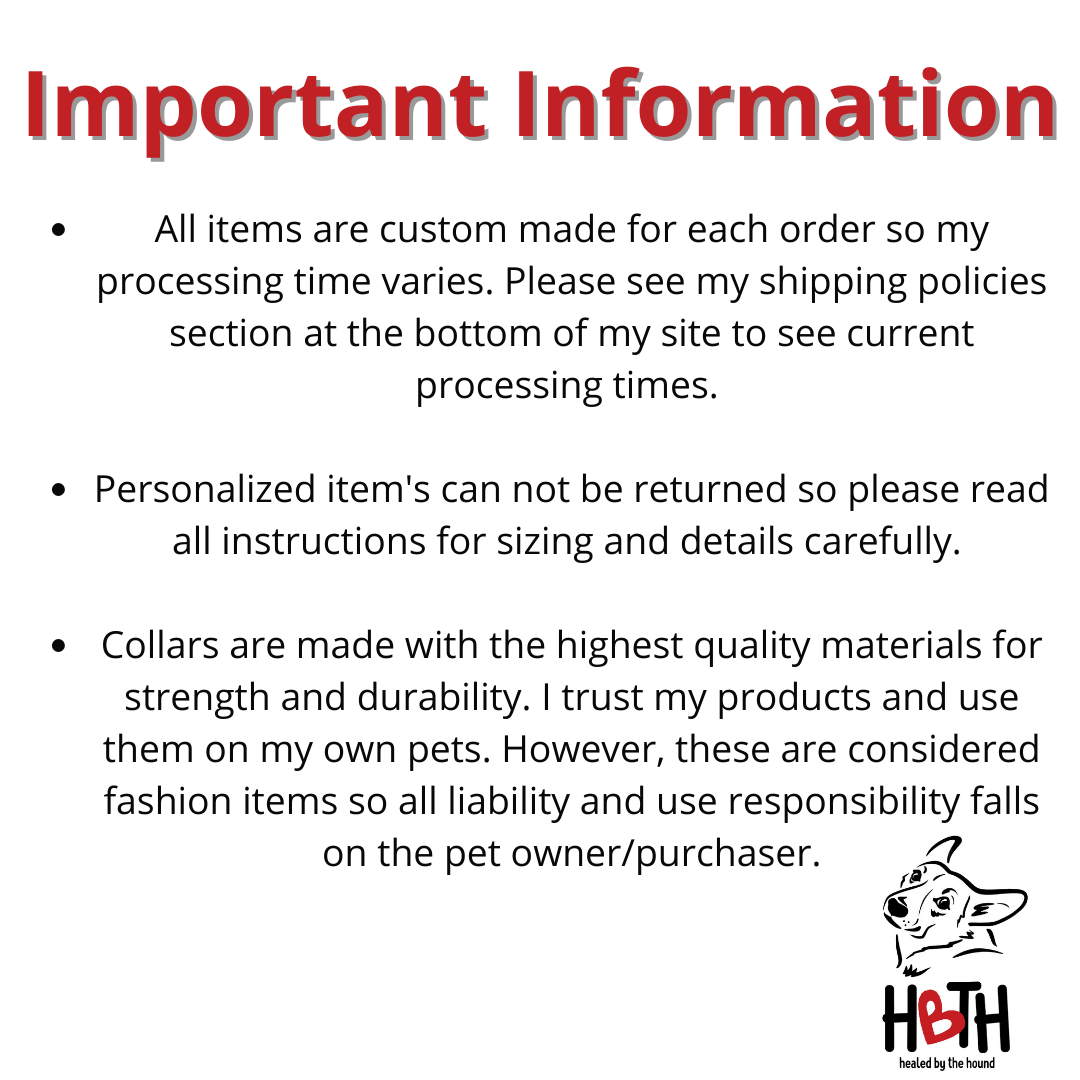 The collar pictured above is a 1.5" in width. Please keep this in mind when ordering larger prints in smaller sizes. The collar you order may not show images as well as the wider collar pictured above.
