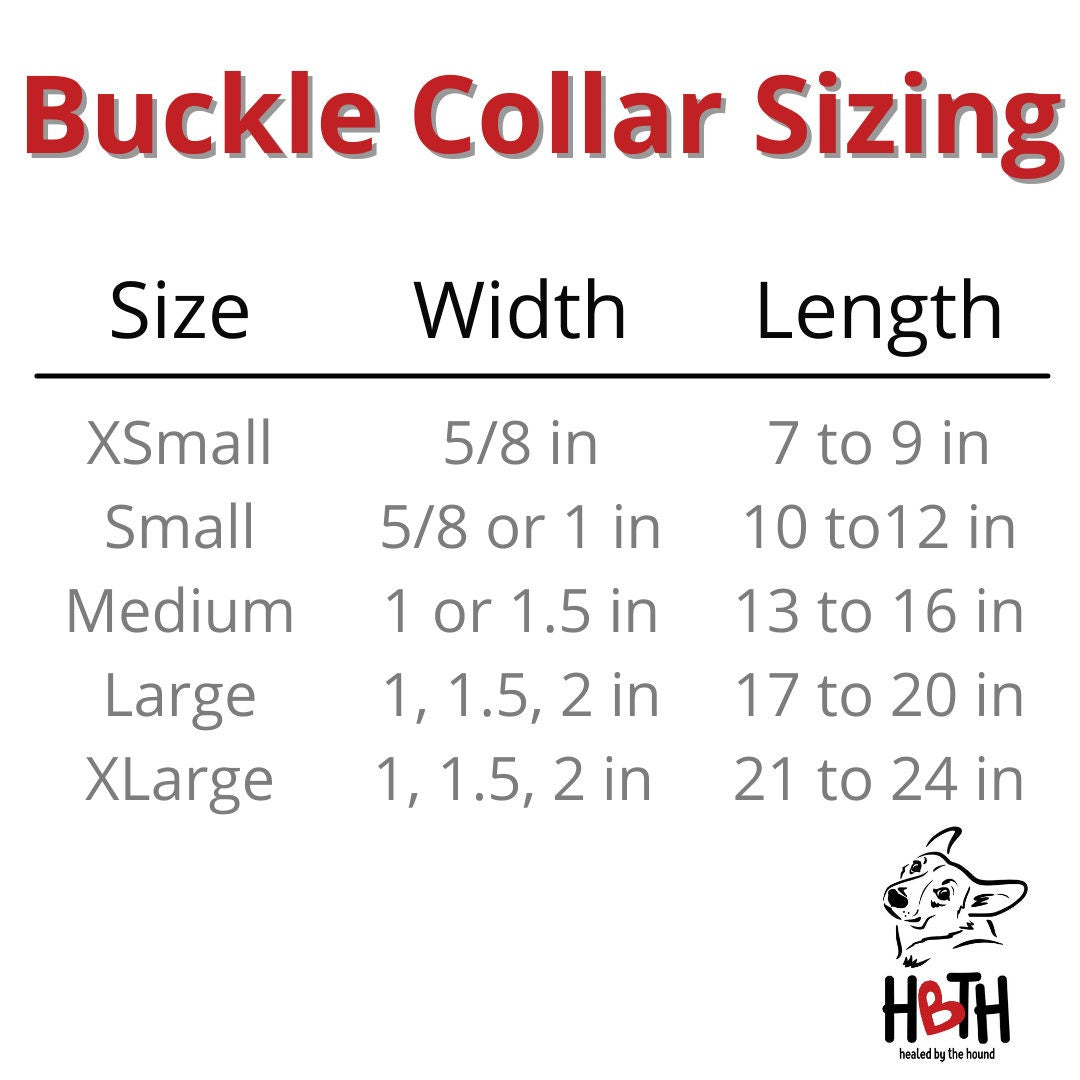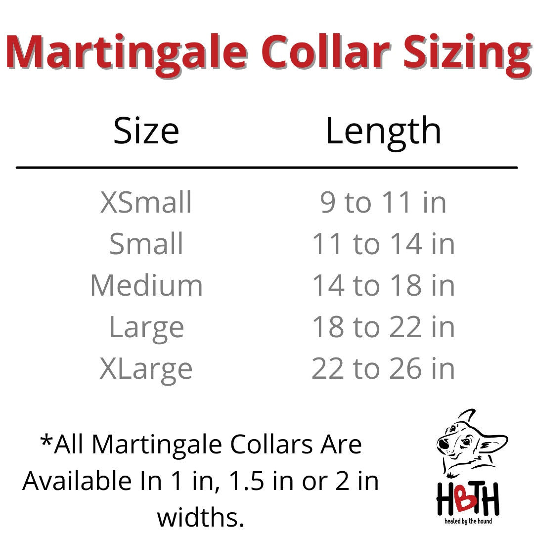 PLEASE PAY SPECIAL ATTENTION TO THE SIZING FOR BEST FIT. SIZING VARIES SLIGHTLY BETWEEN BUCKLE COLLARS AND THE MARTINGALE OPTION.